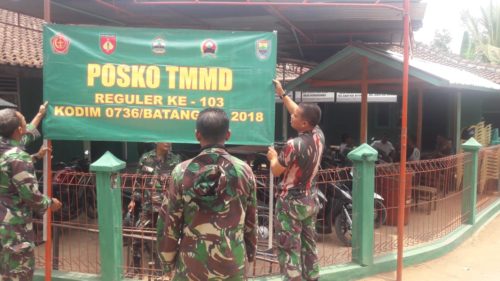 Kantor desa sengaja dipilih sebagai Poskotis, dikarenakan lokasinya berada di tengah-tengah antara lapangan upacara dengan sasaran TMMD, sehingga nantinya diharapkan pemantauan maupun koordinasi dengan instansi desa dapat lebih optimal, mengingat hajatan TNI ini melibatkan juga warga masyarakat. Tempat ini juga dapat digunakan sebagai rumah singgah untuk rekan-rekan media, baik lokal maupun nasional yang akan membantu publikasi pembangunan. Terlihat Sertu Darsono, Babinsa Koramil 12 Tulis Kodim 0736 Batang memasang banner penanda tempat. Senin (14/10/18).(kodim batang|red|noven)