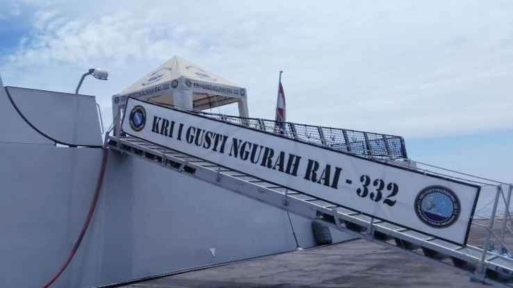 KRI I Gusti Ngurah Rai-332 dalam pengamanan pemilu tahun 2019 ini juga sebagai kapal markas gugus tempur laut Komando Armada II.(dispenlantamal VI|red)