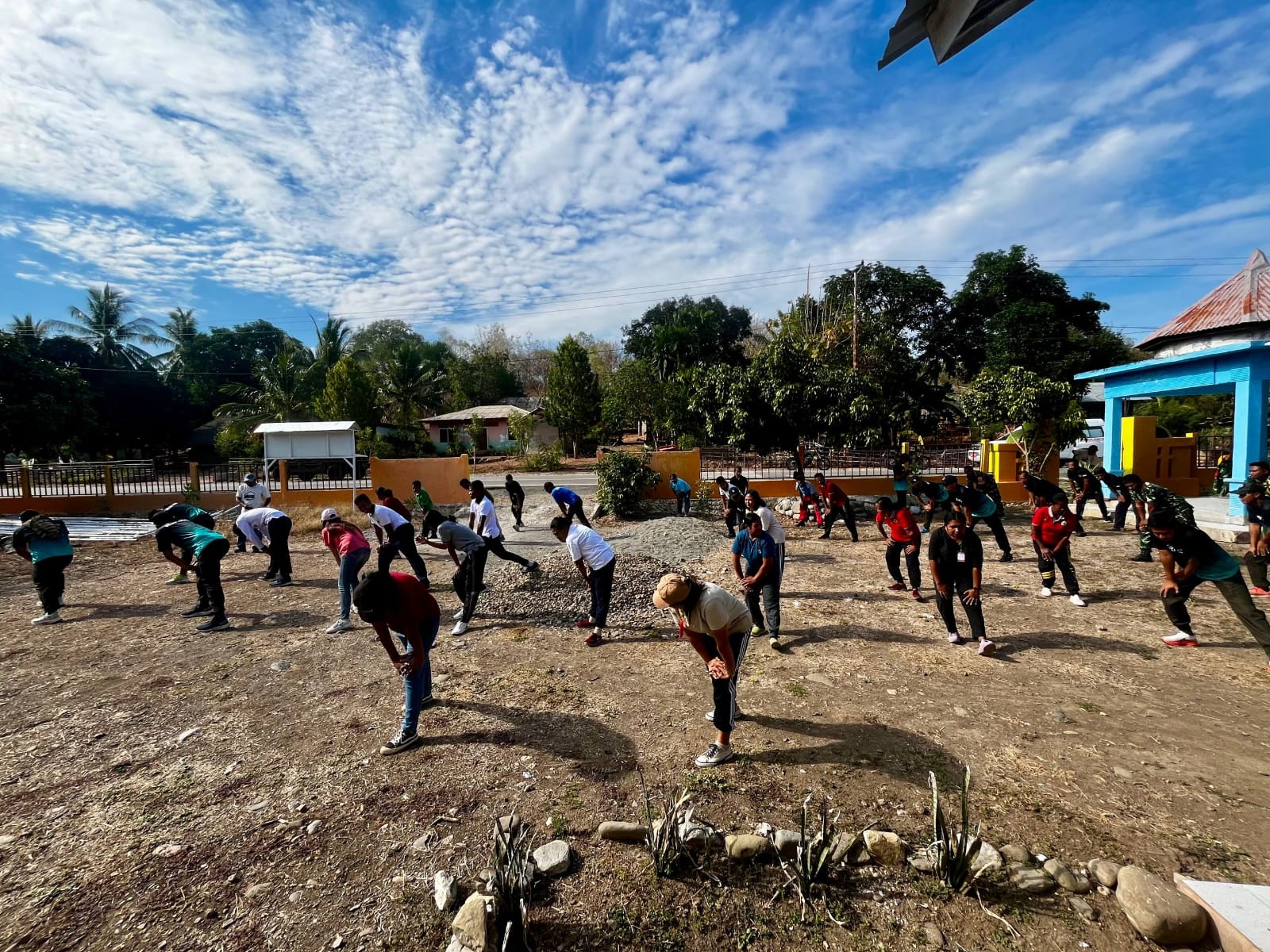 Kegiatan ini dilaksanakan di lapangan balai desa dan diikuti dengan penuh antusias oleh warga, anggota Satgas Pamtas Pos Oepoli Tengah, serta unsur Koramil dan Polsek.