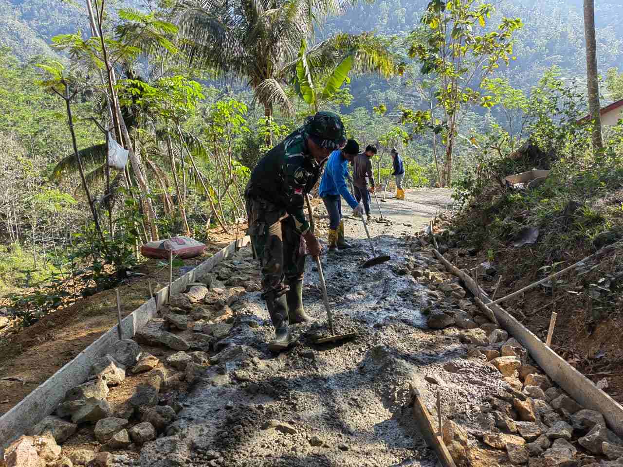 Danki Satgas TMMD 126 Kodim 0801/Pacitan Kapten Arm Abdul Razak mengatakan bahwa hari ini bersama warga masyarakat bahu membahu melanjutkan pengerjaan pengecoran rabat jalan beton.
