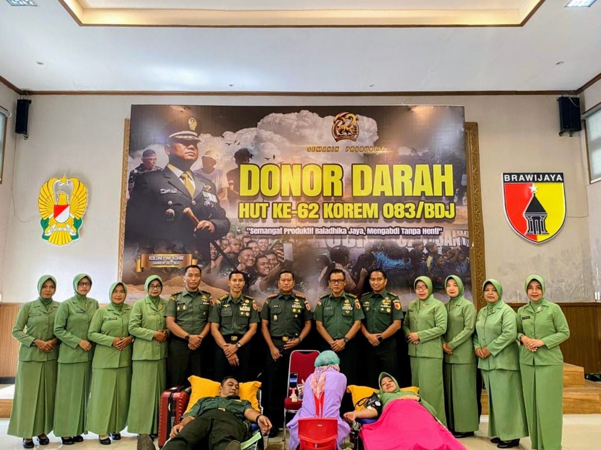 Danrem 083/Baladhika Jaya Kolonel Inf Kohir menyampaikan penghargaan atas partisipasi prajurit dan PNS yang turut terlibat. “Donor darah ini mencerminkan kepedulian dan jiwa sosial keluarga besar Korem 083/Bdj. Setiap tetes darah yang diberikan memiliki makna besar bagi keselamatan orang lain,” ujarnya.