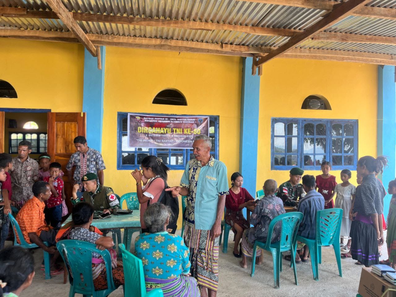 Kegiatan ini dipimpin langsung oleh Dan SSK 2, Lettu Arh Suradi, S.E. “Kegiatan ini kami laksanakan bertepatan dengan momen yang penting di mana pada hari ini, Minggu, 5 Oktober 2025 merupakan Hari Ulang Tahun TNI ke 80. Kami memberikan pelayanan kesehatan gratis di garis perbatasan RI-RDTL, serta memberikan buku Alkitab untuk Umat Gereja Kapel Haumeniana,” ucapnya.