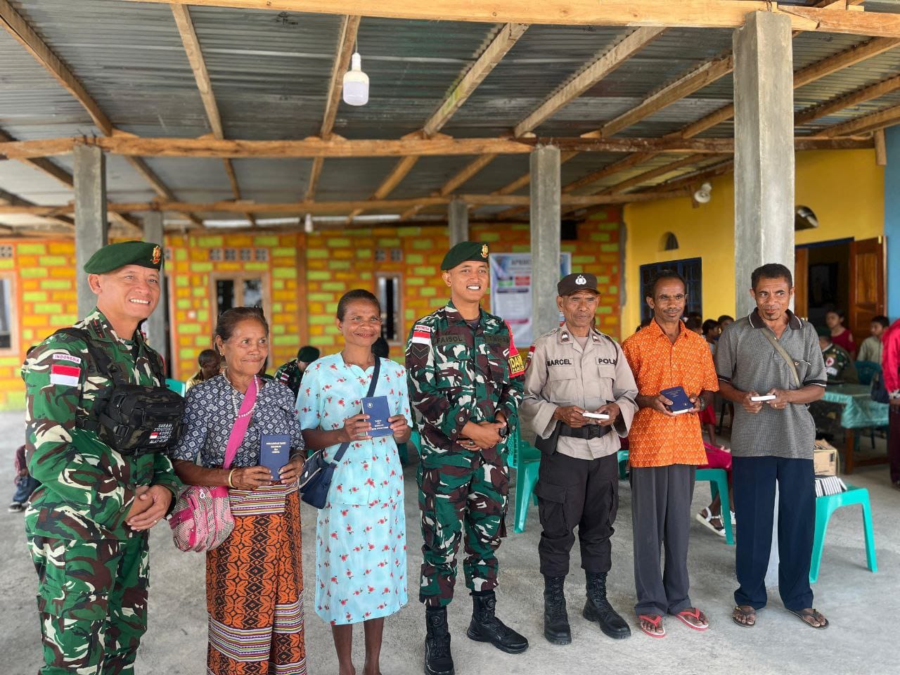 Haumeniana – Prajurit Satgas Pamtas RI–RDTL Sektor Barat Pos Haumeniana menunjukkan kepedulian terhadap masyarakat perbatasan dengan memberikan pelayanan kesehatan gratis dan pembagian Alkitab di Gereja Kapel Haumeniana, Kecamatan Bikomi Nilulat, Kabupaten TTU, Minggu (05/10/2025).