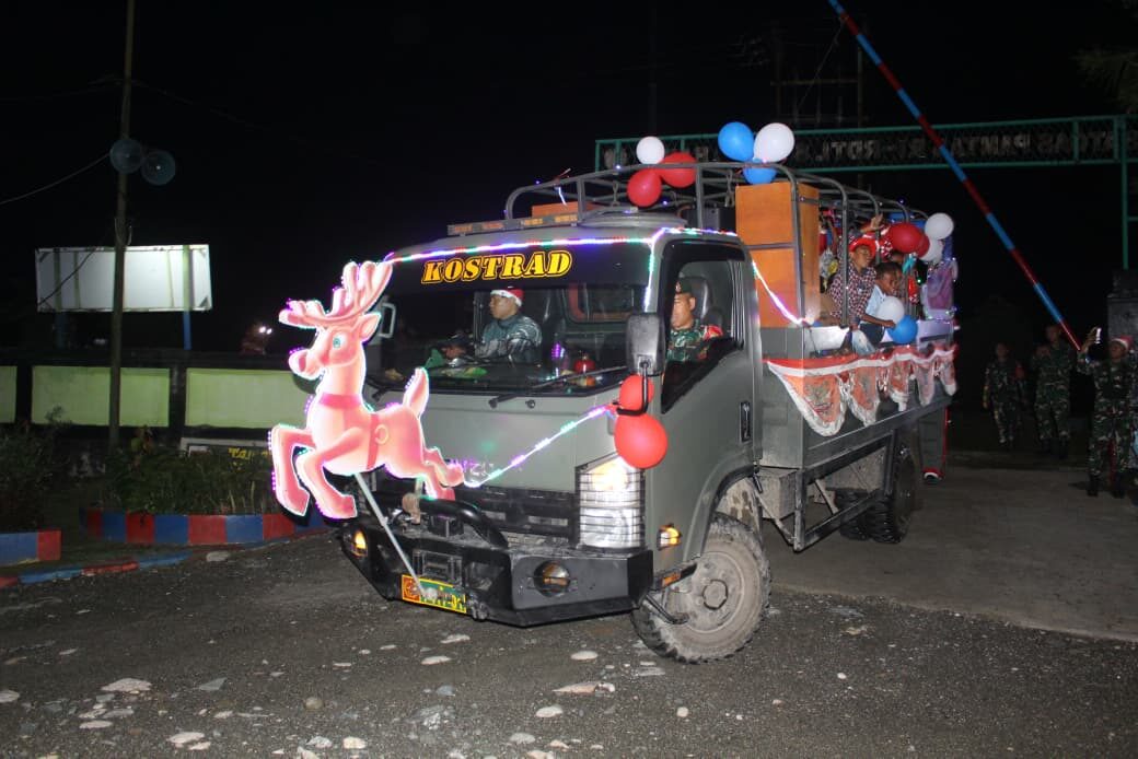 Satgas Pamtas menyulap truk NPS menjadi kereta santa yang didalamnya diisi hadiah dan juga Santa Claus yang membagikan hadiah dan bingkisan natal di wilayah perbatasan. Hal ini disambut dengan penuh antusias oleh masyarakat desa khususnya anak-anak.