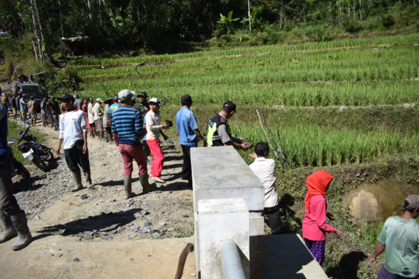 Dikatakan Bambang, menurutnya hingga saat ini kondisi yang ada di lapangan masih bisa diatasi, terutama bahan baku batu, termasuk bersama perangkat desa yang selalu mengontrol warga setempat yang terjadwal ikut bergotong royong.