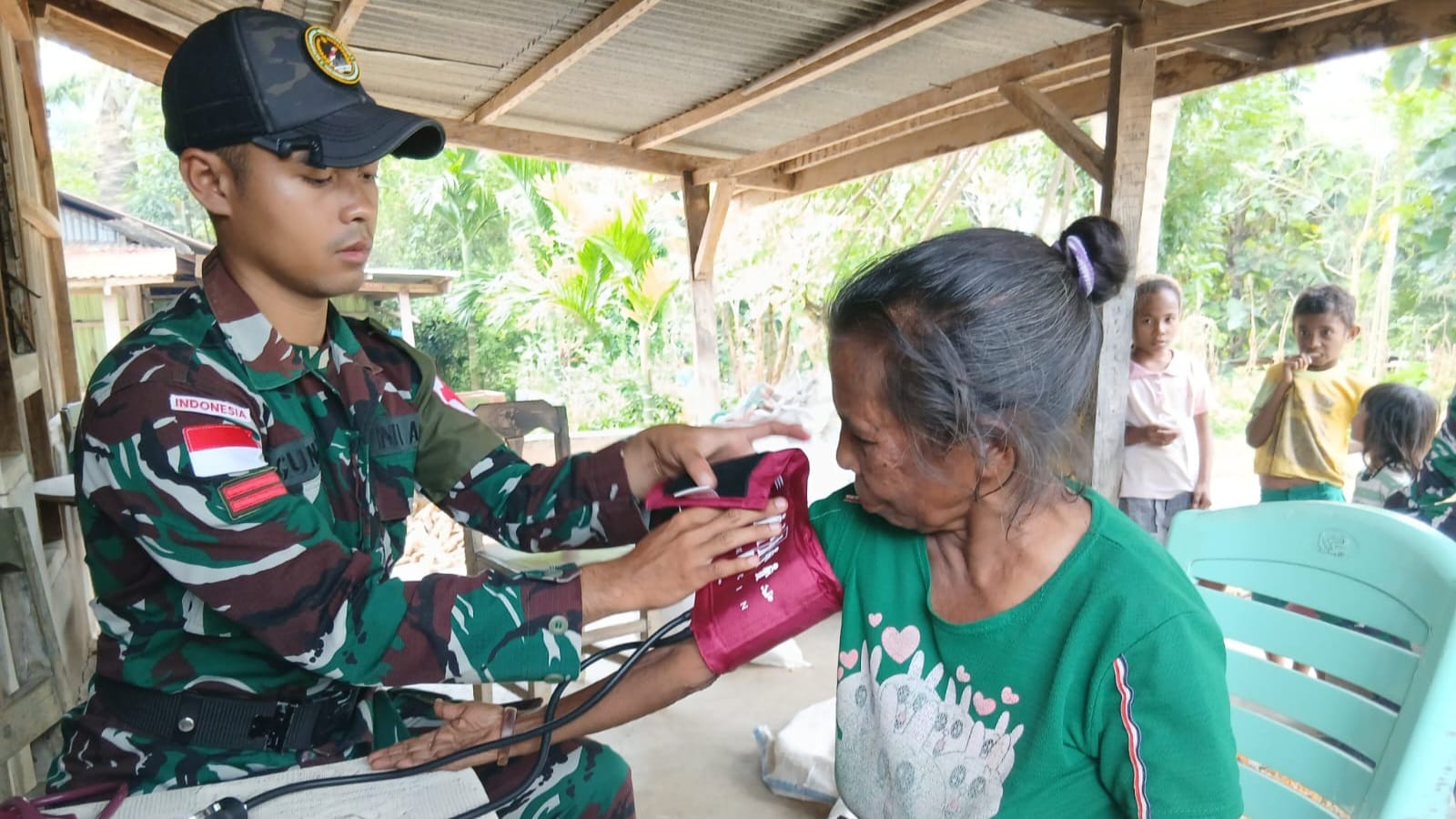 Selain itu, Satgas juga memberikan pelayanan kesehatan khususnya kepada para lansia di desa binaan. Pemeriksaan kesehatan dilakukan secara langsung oleh personel, meliputi pengecekan kondisi fisik serta pemberian obat-obatan ringan guna membantu menjaga kesehatan warga, terutama kelompok usia lanjut.