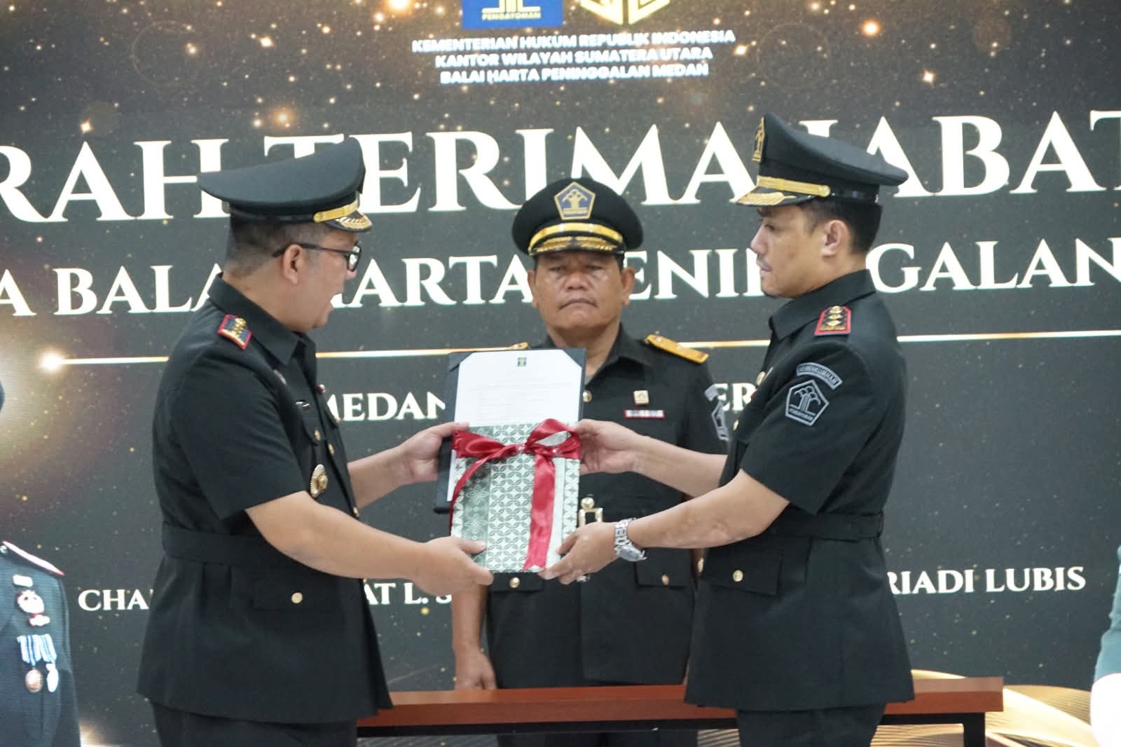 Medan – Balai Harta Peninggalan (BHP) Medan melaksanakan Serah Terima Jabatan Kepala Balai Harta Peninggalan Medan yang berlangsung di Aula BHP Medan, Senin (29/12/2025). Jabatan Kepala BHP Medan secara resmi diserahterimakan dari Chandra Anggiat L. Sitanggang kepada Syafriadi Lubis, disaksikan oleh Kepala Divisi Pelayanan Hukum Kantor Wilayah Kementerian Hukum Sumatera Utara, Sahata Marlen Situngkir, yang hadir mewakili Kepala Kantor Wilayah.