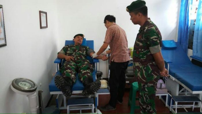 PB|Purwakarta – Prajurit Denma Menarmed 2 Kostrad melaksanakan donor darah di PMI Purwakarta untuk menolong pasien a.n Ibu Sofiah (38 tahun) warga kelurahan Nagri Kaler Kab. Purwakarta yang mengalami kekurangan Trombosit dalam jumlah besar akibat menderita demam berdarah, sehingga membutuhkan darah golongan “O” sebanyak 4 kantong. Rabu (12/07/18).
