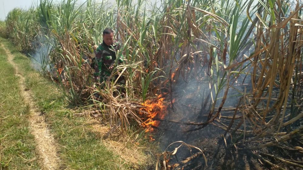 Kades Mojoluhur G. Sumarsono melihat ada asap yang mengepul yang berasal dari lahan tebu yang berada disebelah barat balai Desa Mojoluhur.