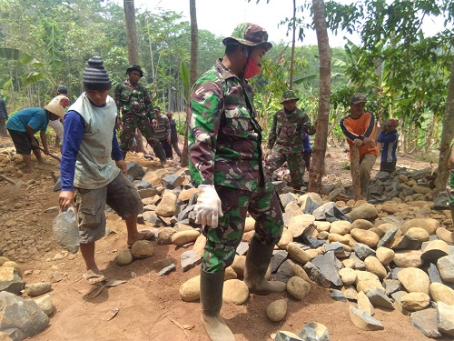 Dari pantauan di lokasi, cuaca panas di musim kemarau ini tergolong kering. Angin yang berhembus cukup kencang membawa debu yang dihasilkan dari sisa pengerjaan proyek jalan tembus. Alhasil, banyak TNI dan Warga memilih membungkus kepalanya dengan kain lebar atau kaos oblong untuk menghindari debu dan suhu yang panas dari sengatan matahari. “Saya akui pekerjaan ini sangat berat namun karena sudah kewajiban dan tanggungjawab apapun alasanya kami harus menyelesaikanya,” timpalnya.