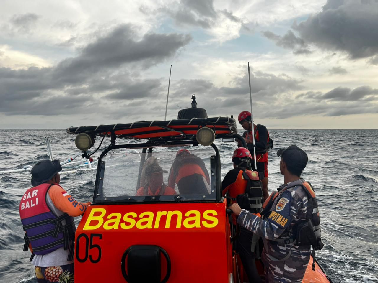 Pukul 16.00 WITA, Tim SAR gabungan dari Pos TNI AL Nusa Penida dan Basarnas bergerak ke lokasi. Evakuasi berhasil dilaksanakan sekitar pukul 18.15 WITA, dan jukung korban kemudian ditarik menuju Dusun Karangsari, Desa Suana, Kec. Nusa Penida.