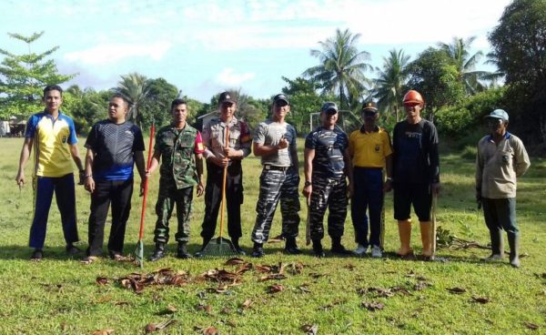 PB|Pontianak – Personel Pos TNI AL Serasan (Posal Serasan) jajaran Lantamal XII melaksanakan kegiatan kerja bhakti berupa pembersihan lapangan bola di kecamatan Pulau Serasan Kalimantan Barat (3/4/18).