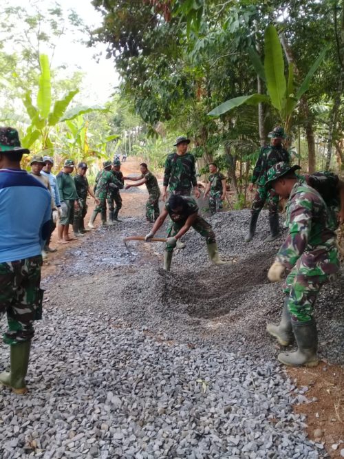 Batang – Lantas apa yang membuat tekad prajurit begitu membaja dalam menyelesaikan aneka pekerjaan di lokasi terik dan sedikit gersang itu? Jawabnya sederhana, yakni motivasi. “Ya, karena motivasi dari salah satu tertua di tiap bagian Program TNI Manunggal Membangun Desa (TMMD)Reguler ke-103 Kodim 0736/Batang. Salah satunya datang dari Serka Soares(kanan pakai topi rimba) anggota Yon Arhanud 15/DBY yang memimpin anak buahnya sesama dari Yon Arhanud menjadi pemicu semangat para prajurit untuk lebih bergiat merampungkan pekerjaan pemerataan batu split meskipun harus berjibaku dengan panas matahari yang membakar kulit.