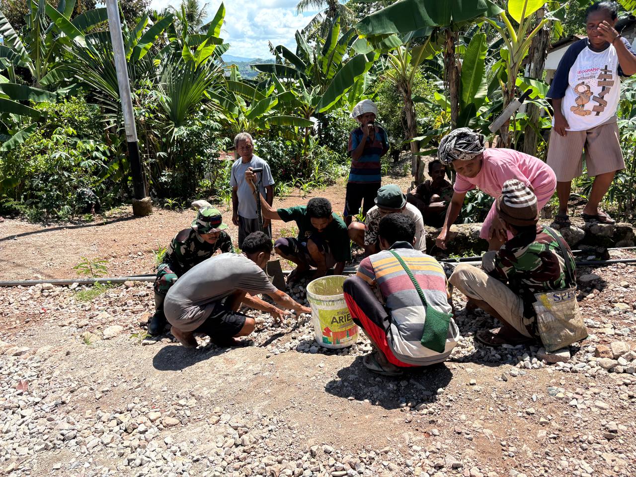 Danpos Inbate, Letda Arh Seno menyampaikan, “Dimulai dari hal sederhana seperti meratakan dan memperkeras jalan yang rusak, kami berharap akses masyarakat menjadi lebih lancar. Jalan yang baik akan sangat berpengaruh pada kegiatan ekonomi dan sosial warga Desa Inbate.”