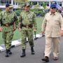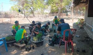 Nampak, Serda Muchibin melihat-lihat dagangan Slamet Riyadi sambil ingin mendengar pemasukan sang pemilik dealer tersebut. Progres saat ini pengaspalan terealisasi 1.450 meter atau 60%.(kodim batang|red|noven)