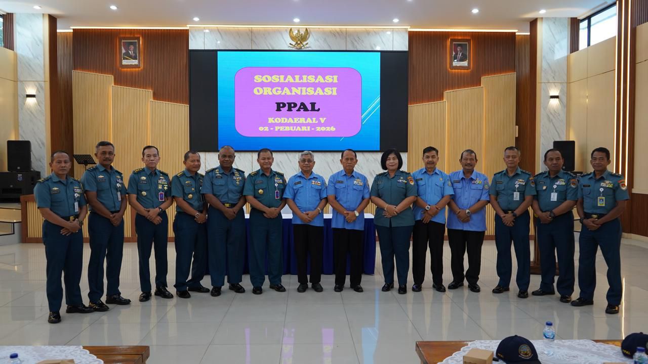 Surabaya – Persatuan Purnawirawan Angkatan Laut (PPAL) menggelar Sosialisasi organisasi kepada prajurit dan PNS Komando Daerah Angkatan Laut (Kodaeral) V bertempat di Gedung Serbaguna Markas Komando Daerah Angkatan Laut (Mako Kodaeral) V Surabaya. Senin (2/2/2026). Kegiatan dibuka oleh Komandan Kodaeral V Laksda TNI Ali Triswanto, S.E., M.Si., yang diwakili oleh Asisten Personalia (Aspers) Dankodaeral V Kolonel Laut (P) Rahadian Rahmadi, S.E., M.Tr.Hanla., M.M.