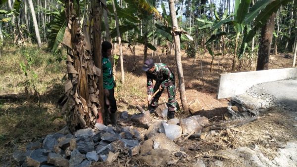 Hampir semua batu yang tertata adalah hasil dari keringatnya, seperti yang diungkapkan pada saat memecah batu di lokasi Pra TMMD siang ini, Sabtu (06/10/18).