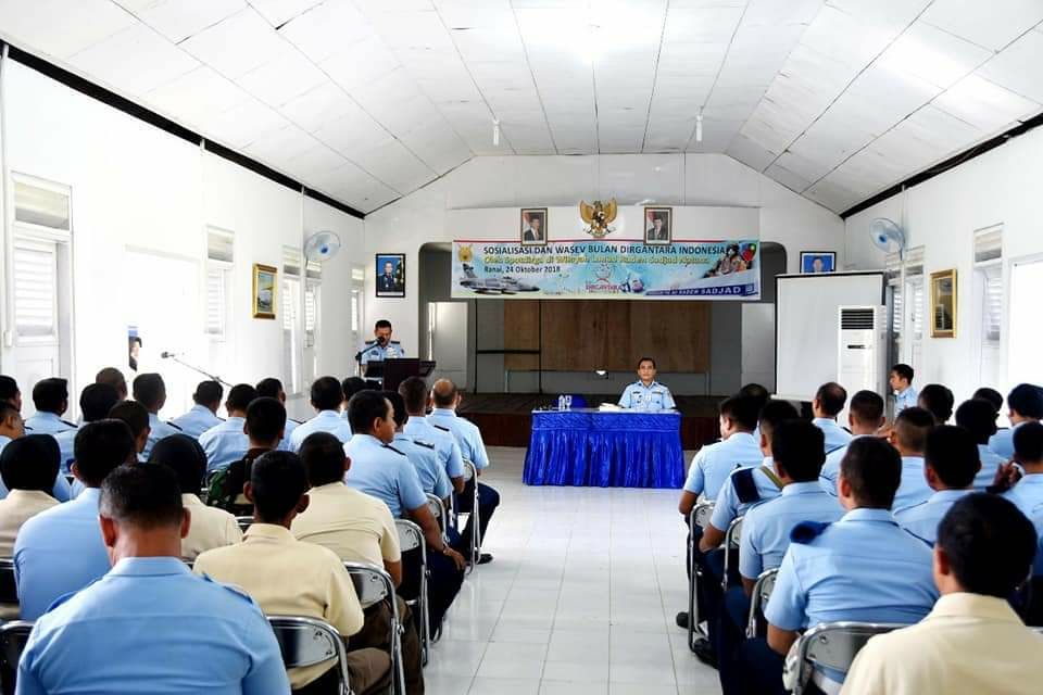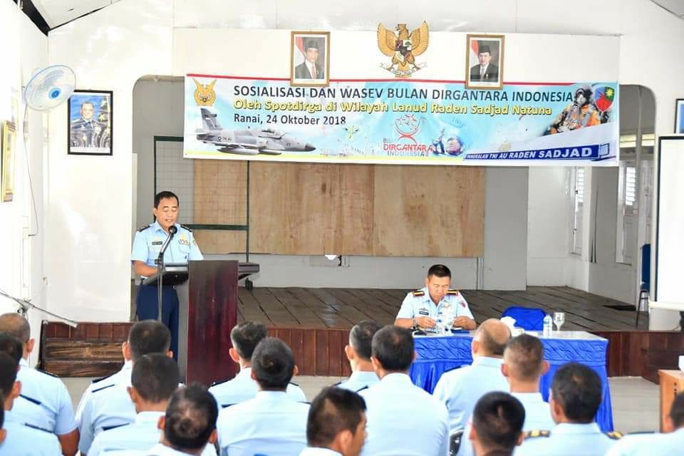 Natuna – Tim dari Staf Potensi Dirgantara (Spotdirga) Mabes TNI Angkatan Udara melaksanakan Sosialisasi, Pengawasan dan Evaluasi(Wasev) Pembinaan Potensi Dirgantara (Binpotdirga) Bulan Dirgantara Indonesia(BDI) di wilayah Ranai-Natuna di Gedung Cakrawala Lanud Raden Sadjad, Rabu (24/10).