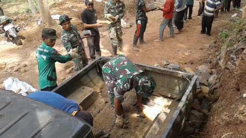 Mobil dinas bak terbuka maupun truk lainya tak bisa menjangkau lokasi tempat pembangunan proyek tersebut. Dengan kondisi yang memprihatinkan itu sontak kegiatan bongkar muat dilakulan secara praktis mengunakan cara berjajar dan estafet untuk menuju ke lokasi sasaran.