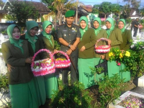 Didampingi pengurus Persit Kartika Chandra Kirana Kodim Kediri, serta para Danramil yang hadir di lokasi keramat dan bernilai historis tersebut, Letkol Inf Purnomosidi melakukan tabur bunga di deretan nisan-nisan yang berisikan jasad para pahlawan. (pendim kediri/dodik s/mark)