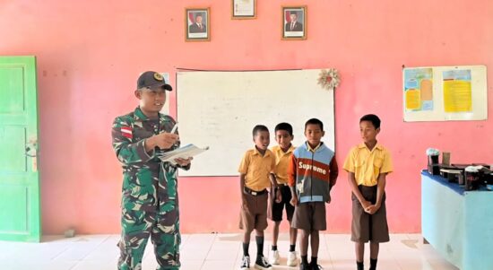 Belu – Kepedulian terhadap dunia pendidikan terus ditunjukkan Satgas Pamtas RI–RDTL Sektor Timur Yonarmed 12 Kostrad melalui kegiatan pengajaran di SDI Nanaenoe,