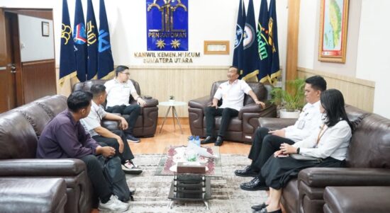Medan – Kepala Kantor Wilayah Kementerian Hukum Sumatera Utara, Ignatius Mangantar Tua Silalahi, menerima audiensi Anggota DPRD Kota Medan Agus Setiawan terkait