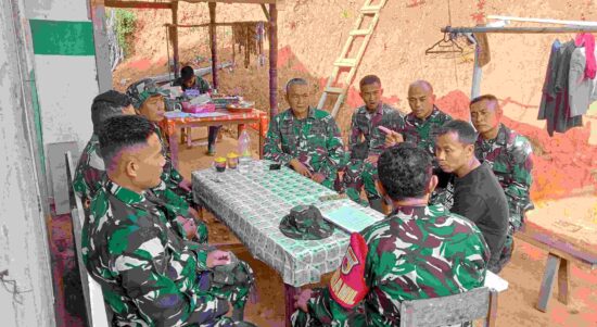 Pacitan – Danki Satgas Tentara Manunggal Membangun Desa (TMMD) Ke – 126 Kapten Arm Abdul Razak duduk bersama perangkat Desa Petungsinarang guna