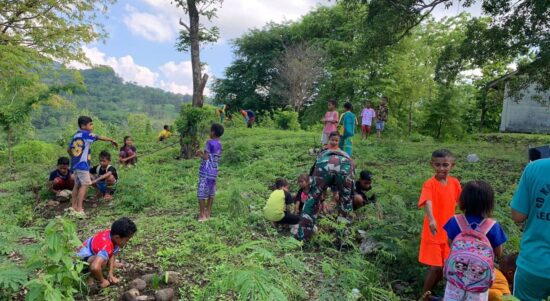 TTU – Wujud kepedulian terhadap kelestarian lingkungan, Satgas Pamtas RI–RDTL Sektor Barat Yonarhanud 2 Kostrad Pos Naekake berikan edukasi penanaman pohon cemara