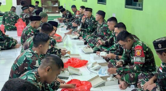 Belu – Suasana penuh kebersamaan dan kehangatan Ramadhan terasa di Masjid Nurul Ikhlas Makosatgas Satgas Pamtas RI–RDTL Sektor Timur Yonarmed 12 Kostrad.