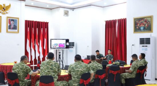 Gunungsitoli – Pangdam I/Bukit Barisan Mayjen TNI Hendy Antariksa mengikuti video conference (vidcon) launching 218 Jembatan Garuda yang digelar secara nasional dari