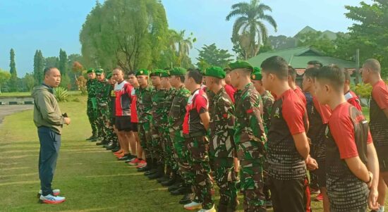 Sintang – Kepala Staf Korem 121/Abw (Kasrem) Kolonel Inf Dadang Ismail Marzuki, S.I.P., memberikan Jam Komandan kepada para Prajurit Korem 121/Abw pada