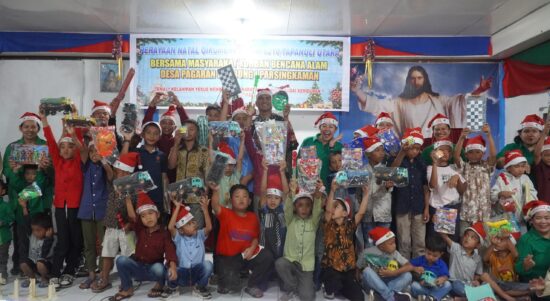 Tapanuli Utara — Kodim 0210/Tapanuli Utara menggelar kegiatan Natal bersama warga terdampak bencana alam di Gereja HKI Parsingkaman, Desa Pagaran Lambung I,