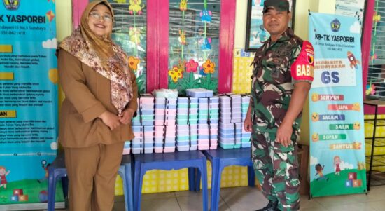 Surabaya – Dengan penuh kepedulian, Babinsa Kelurahan Sidosermo Koramil 0830/20 Wonocolo, Serda Sigit Handoko, hadir di tengah anak-anak KB-TK YASPORBI, Senin (10/02).