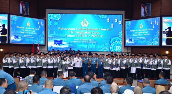 Jakarta – Markas Besar Angkatan Laut (Mabesal) menggelar Peringatan Maulid Nabi Muhammad SAW sekaligus memberangkatkan peserta Ibadah Umrah Dinas tahun 2023, dari