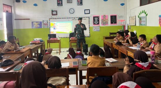 Belu — Satgas Pamtas RI–RDTL Sektor Timur Yonarmed 12 Kostrad melaksanakan kegiatan pengajaran dan pendidikan dengan tema Pola Hidup Bersih dan Sehat