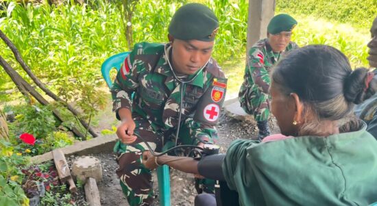 Belu – Satgas Pamtas RI–RDTL Sektor Timur Yonarmed 12 Kostrad melalui Pos Fohululik melaksanakan kegiatan Pelayanan Kesehatan kepada masyarakat di Desa Lutharato,