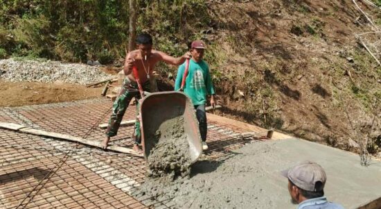 Pacitan, – Satgas TNI Manunggal Membangun Desa (TMMD) Reguler ke-126 Kodim 0801/Pacitan melanjutkan pekerjaan pengecoran jembatan yang menjadi salah satu sasaran fisik