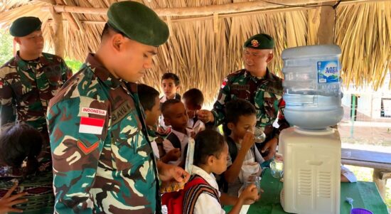 Wujud Kepedulian Satgas Pamtas, Pos Asulait Ringankan Langkah Pelajar Menuju Sekolah