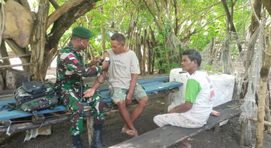TTU – Satgas Pamtas RI–RDTL Sektor Timur Yonarmed 12 Kostrad melalui Pos Motamasin melaksanakan kegiatan pelayanan kesehatan keliling di Dusun Metamauk, Kecamatan