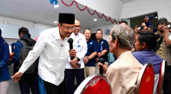 Surabaya – Menteri Sosial Saifullah Yusuf (Gus Ipul) meninjau penyaluran Bantuan Langsung Tunai Sementara (BLTS) tahap akhir di Kantor Pos Kebonrejo Surabaya,