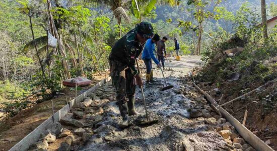 Semangat Kebersamaan Satgas TMMD 126 Kodim Pacitan Percepat Pembuatan Rabat Jalan