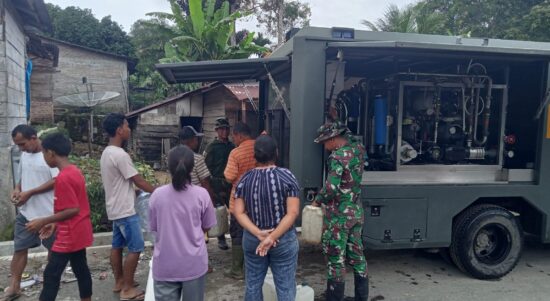 Tapanuli Utara – Satgas Yonzipur I/DD mengerahkan satu unit Mobil RO (Reverse Osmosis) Water Treatment untuk membantu warga yang terdampak banjir dan