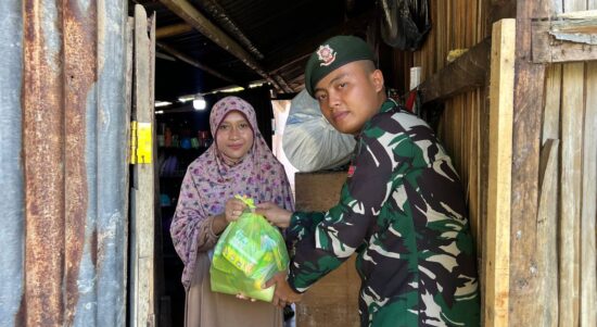 Belu – Satgas Pamtas RI–RDTL Sektor Timur Yonarmed 12 Kostrad kembali menunjukkan kepeduliannya terhadap masyarakat melalui kegiatan Jumat Berkah dengan membagikan paket