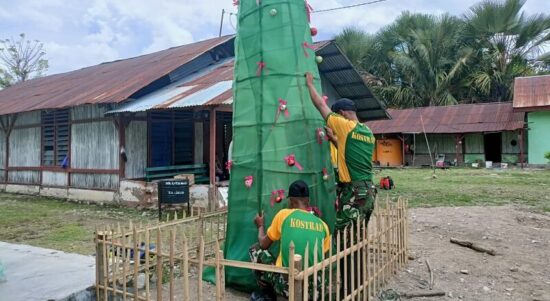 Dari Perbatasan, Satgas Pamtas Pos Motamasin Hadirkan Semangat Natal Melalui Karya Bakti