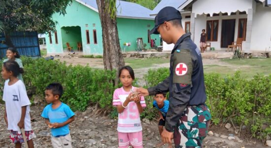 Belu – Satgas Pamtas RI–RDTL Sektor Timur Yonarmed 12 Kostrad Pos Nunura melaksanakan kegiatan sosial berupa pembagian bubur kacang ijo kepada masyarakat