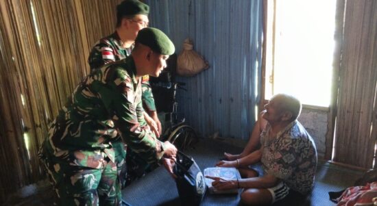 TTU – Makosatgas Pamtas RI-RDTL Sektor Barat Yonarhanud 2 Kostrad melaksanakan kegiatan rutin Jumat Berkah dengan membagikan sembako dan pakaian layak pakai