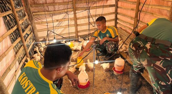 TTU – Satgas Pamtas RI-RDTL Sektor Barat Yonarhanud 2 Kostrad Pos Inbate melaksanakan program ketahanan pangan melalui budidaya peternakan ayam di Desa