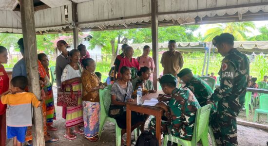 Kupang – Satgas Pamtas RI-RDTL Sektor Barat Yonarhanud 2 Kostrad Pos Oepoli Sungai bersama Yayasan Tangan Pengharapan menyelenggarakan aksi sosial pemeriksaan kesehatan