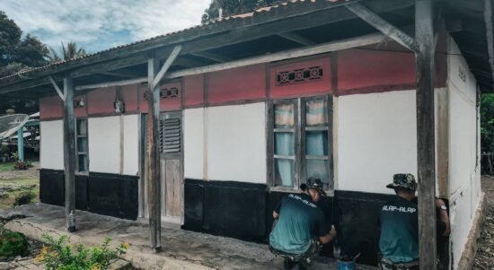 Bakti TNI untuk Masyarakat Wini, Satgas Pamtas Yonarhanud 2 Kostrad Karya Bakti Cat Rumah Warga