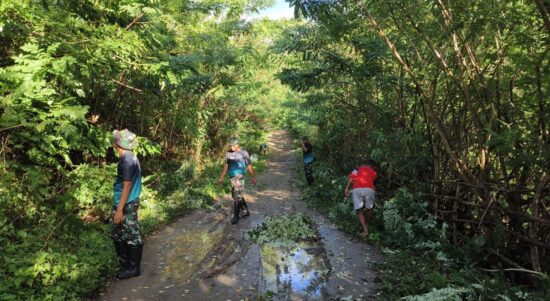 TTU – Satgas Pamtas RI-RDTL Sektor Barat Yonarhanud 2 Kostrad Pos Manamas melaksanakan kegiatan karya bakti dengan melakukan pembersihan jalan bersama warga